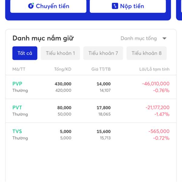 Nói thật giá này mà bán PVT đi thì nên nghỉ mẹ chứng khoán đi. Không biết đọc báo cáo tài chính à . Mua cầm thoả mái ko giảm mạnh dc để là chắc chắn có ăn . Cứ mua mua bán bán làm gì ( đỡ đau đầu)