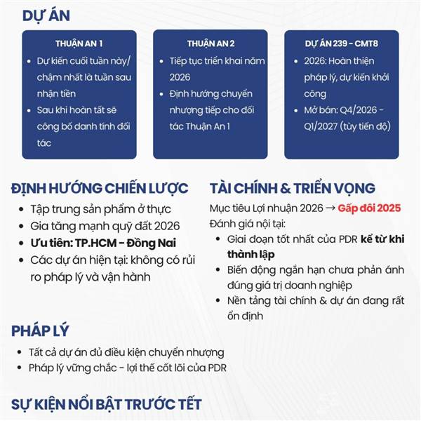 ✅ Tiến độ: Phát Đạt đã hoàn tất 100% các điều kiện để bàn giao dự án cho đối tác theo đúng cam kết. 💰 Dòng tiền: Dự kiến cuối tháng 01/2026, PDR sẽ nhận ...Thêm