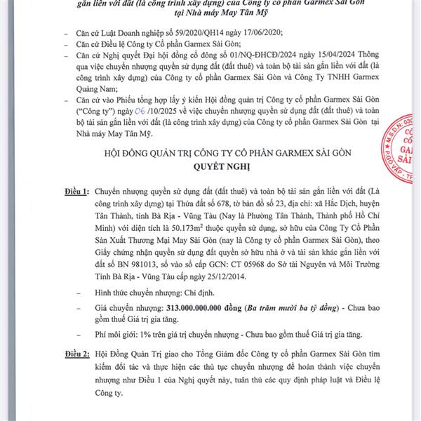 GMC sắp bán miếng đất 330 tỷ khi mà đã pb còn có 7tỷ. Bán xong ghi nhận lãi 323 tỷ