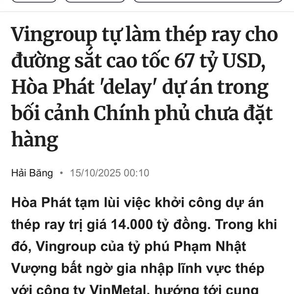 Có khi nào NN sẽ ưu tiên dùng thép của Vin ko ?