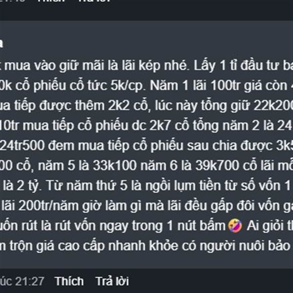 Thật ra bản chất cp đã xấu thì mình ko nói r, cái này chịu. Tuy nhiên mình cũng chia sẽ, mình là F0. cũng n.g.u si, lúc mình mua con này thì lúc đó mình cũng nghĩ nào là cổ tức cao, giá thấp lắm rồi, ...Thêm