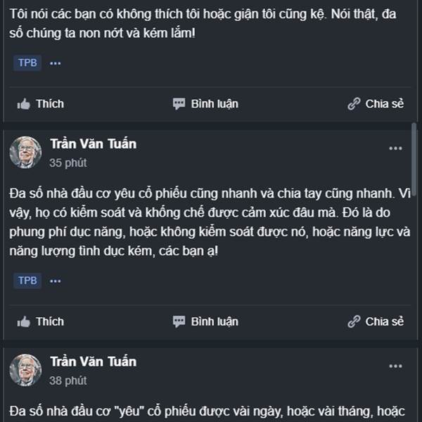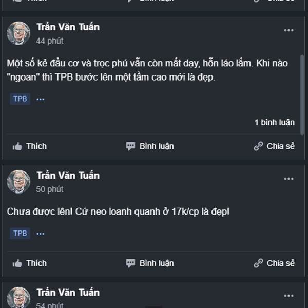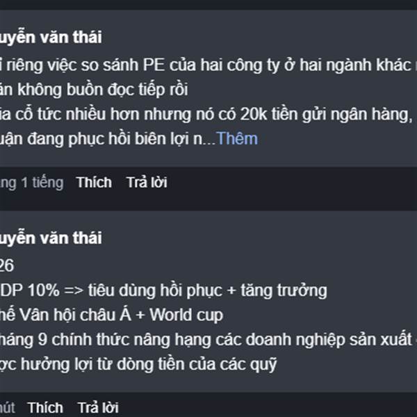 rồi xong, thế là thêm 1 mớ thằng bị 1 cây trần dụ, giờ chịu khó thủ pâm tinh thần là nhận cổ tức, lướt T+ còn ăn chứ đầu tư dài hạn xin ăn ccut cùng bọn tao nhé, bữa còn thấy thằng Lương Bảo Khánh mua...Thêm