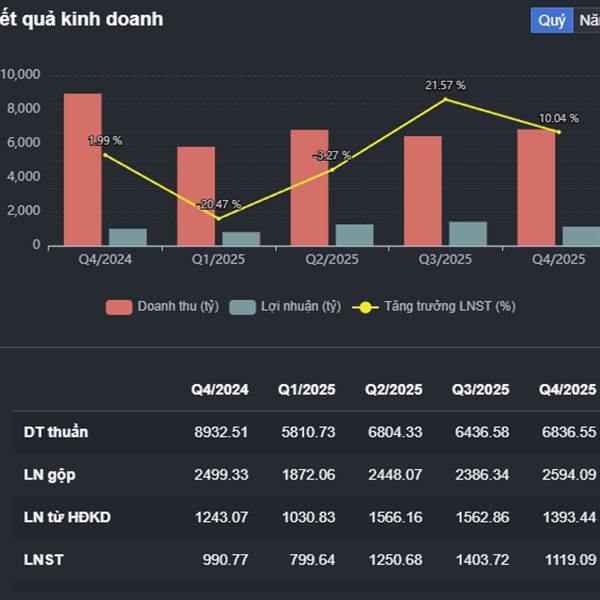 - Q4 năm 2025 lợi nhuận khoảng 1100 tỷ...Thêm