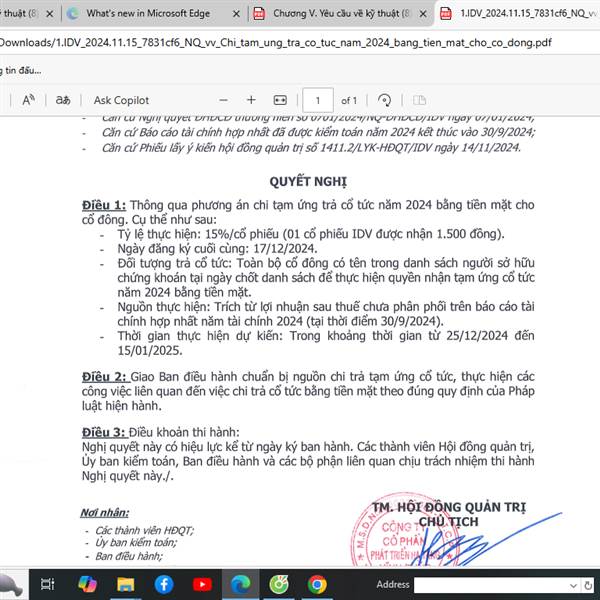Tháng 12 năm nào cũng vậy. Đều nhận cổ tức bằng tiền đều đặn từ IDV.
