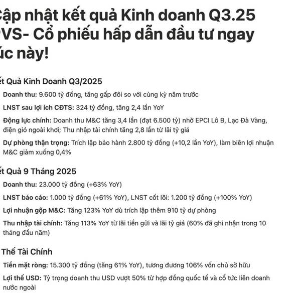 Cập nhật kết quả Kinh doanh Q3.25 PVS- Cổ phiếu hấp dẫn đầu tư ngay lúc này!