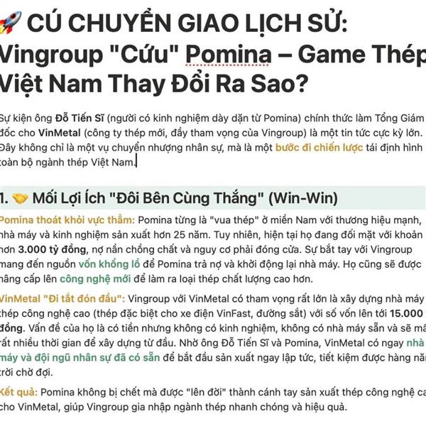 🚀 Vingroup "Cứu" Pomina – Game Thép Việt Nam Thay Đổi Ra Sao?