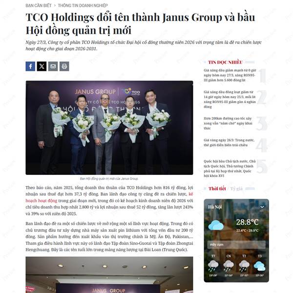 CP Hong Kong- CP Group Là đối tác chiến lược toàn diện của TCO (Janus Group )
