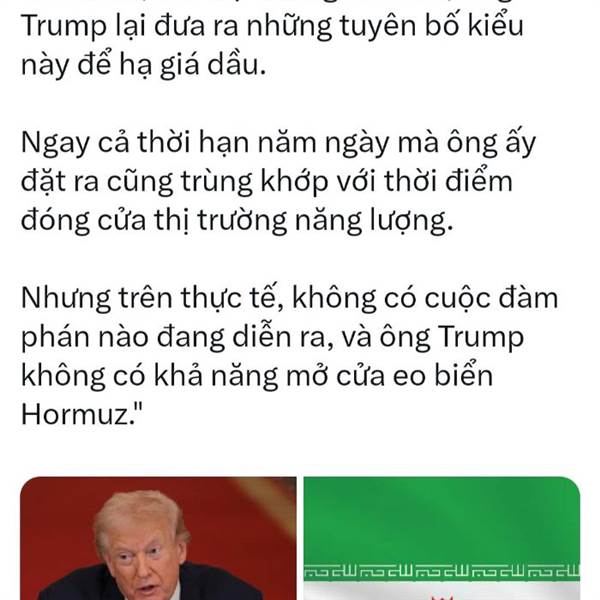 🍁Trump đang bị sang chấn nặng😇 khi đã xa lầy vào chiến sự kiểu bắt đầu muốn "vào nhanh rồi ra nhanh" miễn sao có lợi nhất🤣 Đã gia hạn ko tấn công cơ sở năng lượng Iran lên 10 ngày để suy tính kết th...Thêm