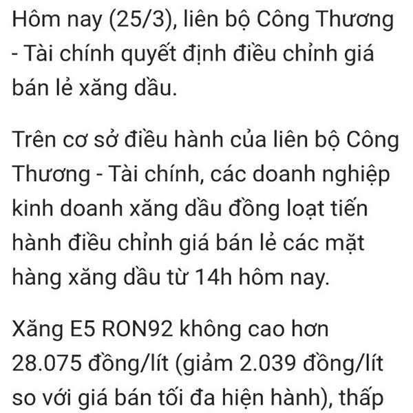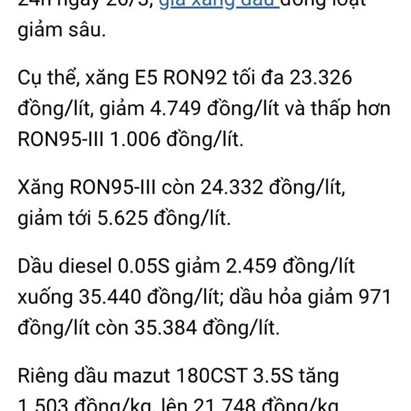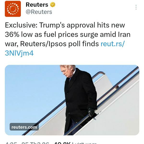 Tin mới nhất giá xăng đã điều chỉnh giảm về dưới 30k...từ 14h 25/03😇 Cơ quan điều hành rất linh động cập nhật liên tục giá nhiên liệu theo tình hình hạ nhiệt chiến sự... Tỉ lệ ủng hộ Trump về mức thấp ...Thêm