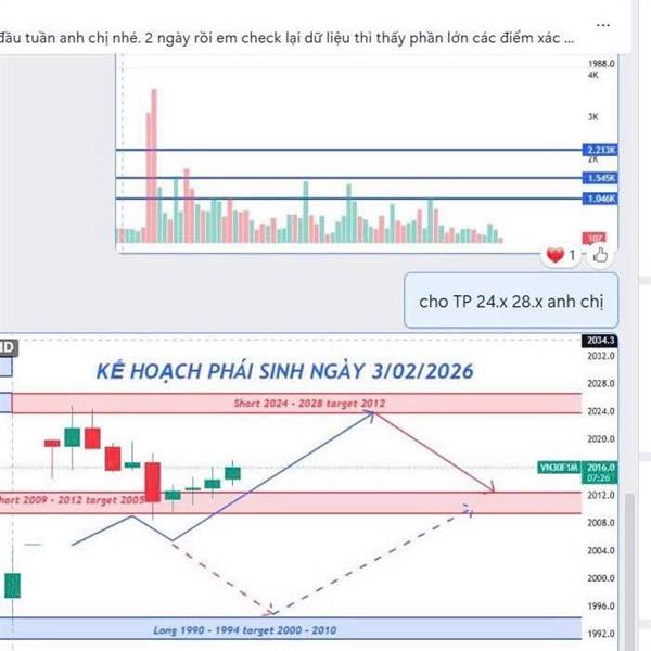 Kế hoạch Phái Sinh ngày 9/ 2/ 2026. Chúc Anh chị có phiên giao dịch thành công nhé 🌹🌹🌹