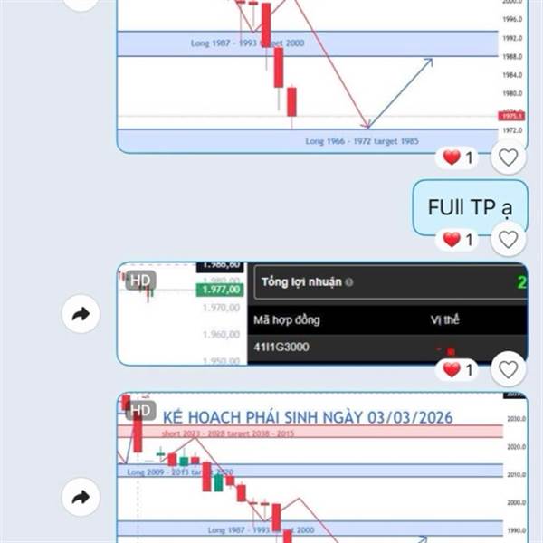 Tổng kết phiên giao dịch 26/ 2/ 2026. Tổng cộng 3 lệnh Long. Chúc mừng Anh chị có giao dịch thành công nhé 🌹🌹🌹