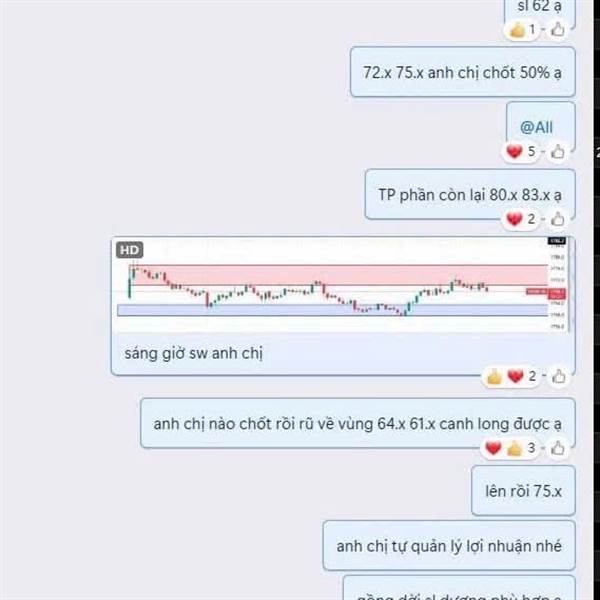 Chúc mừng Anh Chị vào được lệnh Long 43-44 chiều qua và lệnh Long 73-74 sáng nay nhé. Cũng lãi nhẹ 50-60đ rồi ạ 🥰🥰🥰🌹🌹🌹