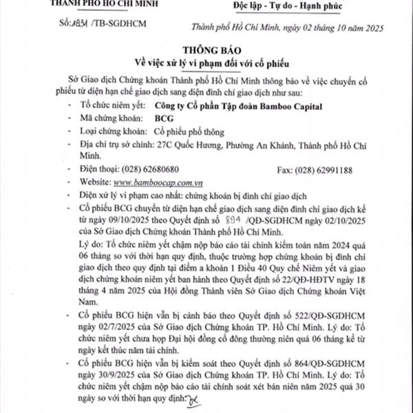tgian đình chỉ tối đa 6 tháng nên miễn là BCG có bctc để khắc phục thì trc 2/4 năm sau là đc gd lại thôi, phiên đầu ăn 20% rồi, nên đặt cược k 🤪🤪 nên mn cũng đừng sợ hãi quá, còn cần bán thì đặt ở đ...Thêm