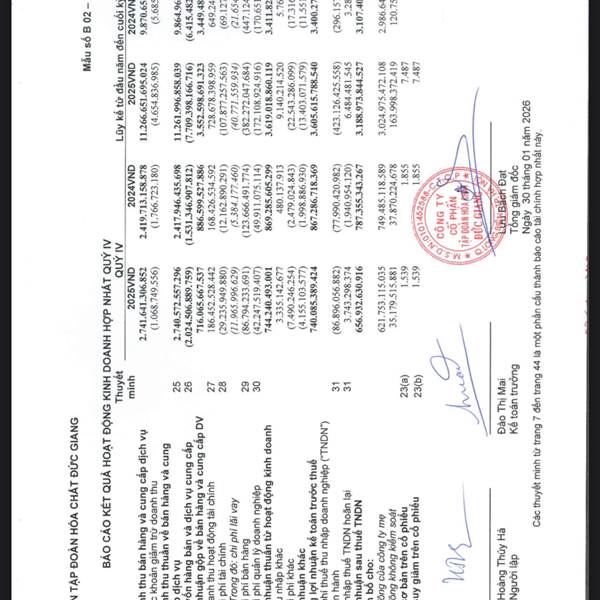 Toang rồi. Doanh thu 2740 tỷ mà lợi nhuận sau thuế có 656 tỷ. Ít hơn quý 4 2024 rồi. Chữ ký giám đóc đã có nhưng lnst lại giảm so với cùng kỳ.