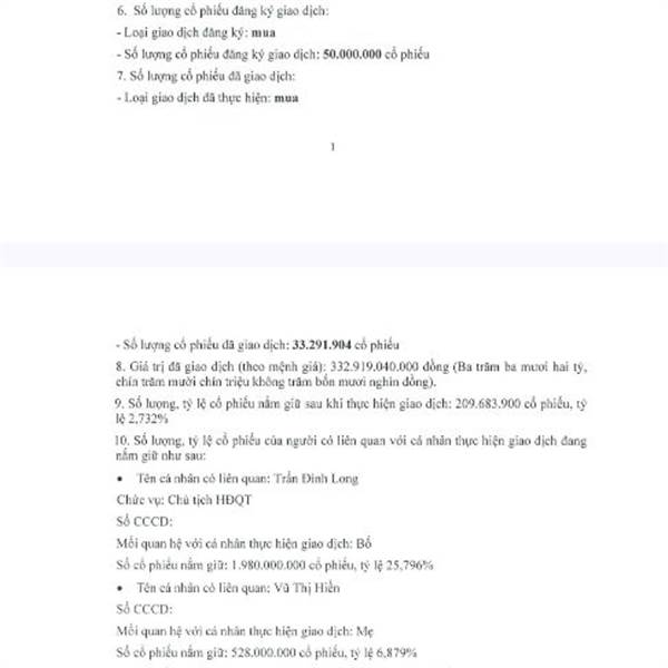 Cổ tức: 10% tiền + 15% cổ phiếu.