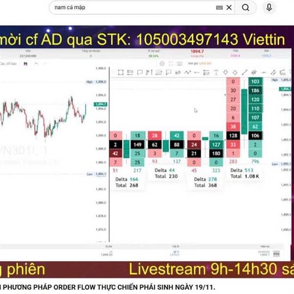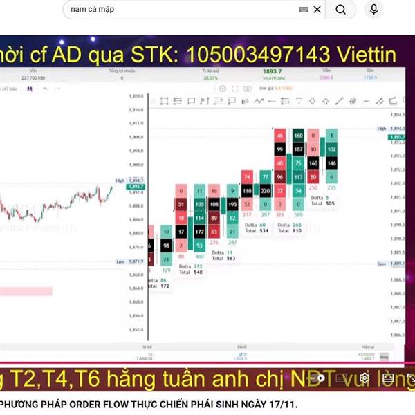 - Sáng trên live YTB Phái Sinh Nam Cá Mập với order flow đã giúp Ad và khách hàng có lợi nhuận trên 17đ 2 lệnh khi