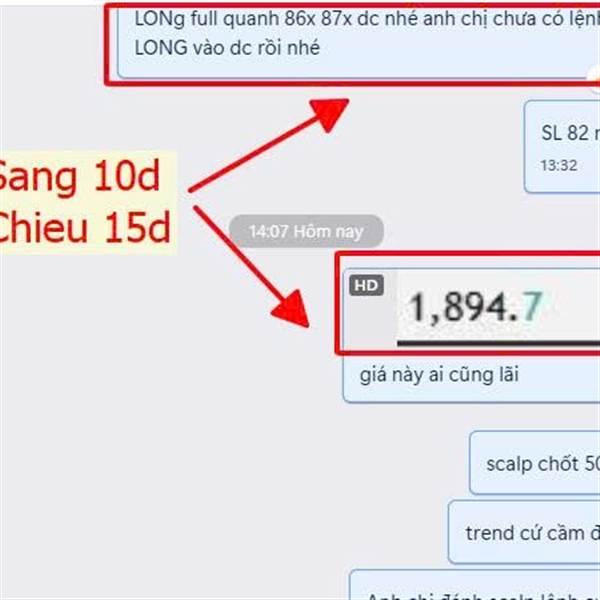 - Phiên sáng mở mắt đã tăng Ad đã cho anh chị long ở 1884 lên 1894 lai 10d