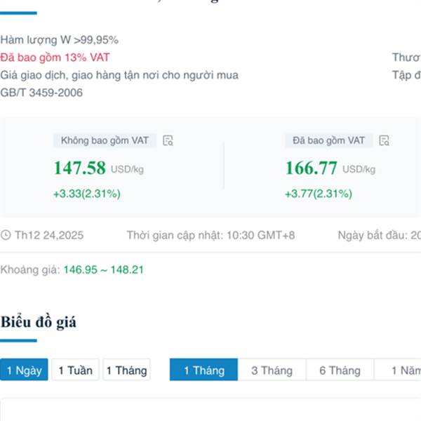 Giá cập nhật hôm nay 24.12 vonfram tăng 2.31%