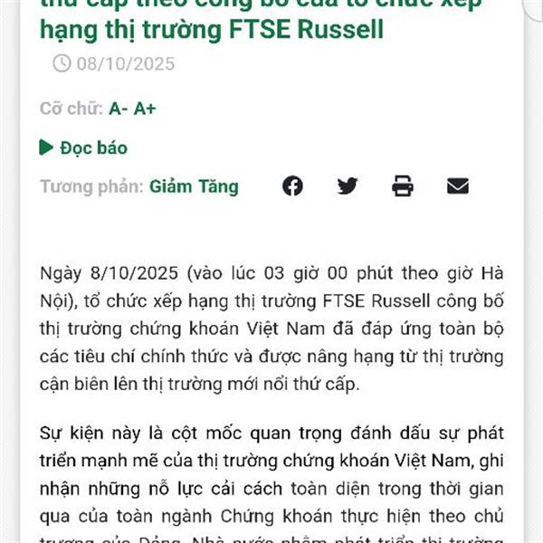 CHÍNH THỨC NÂNG HÁNG Từ THỊ TRƯỜNG CẬN BIÊN -> LÊN THỊ TRƯỜNG MỚI NỔI THỨ CẤP
