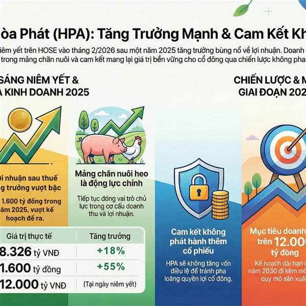 Ngày 6/2/2026, 285 triệu cổ phiếu HPA (Nông nghiệp Hòa Phát) chính thức niêm yết trên HOSE với giá tham chiếu 41.900 đồng/cp, vốn h...Thêm