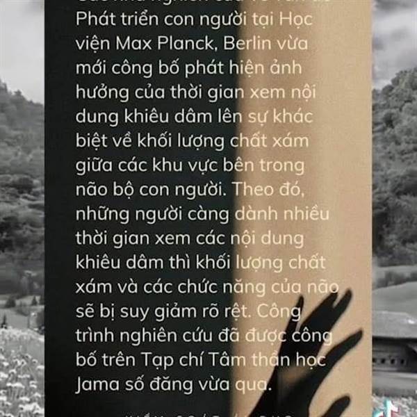 Các nhà nghiên cứu về vấn để Phát triển con người tại Học viện Max Planck, Berlin vừa mới công bố phát hiện ảnh hưởng của thời gian xem nội dung khiêu dâm lên sự khác biệt về khối lượng chất xám giữa c...Thêm