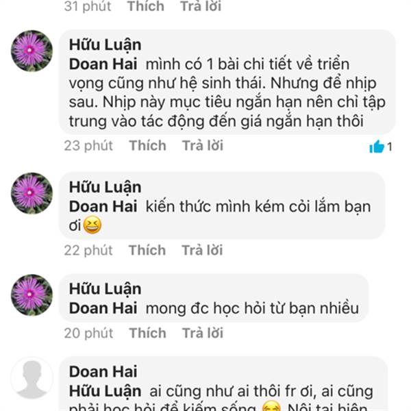 Có lẽ tôi nên rút về hậu trường , theo dự báo của tôi HVN sẽ về 20 . Các cháu sẽ lặn rất sâu 1 thời gian dài , việc đã hết , thôi thì xin chào các bác . Thằng Spartan đừng nhắc gì đến t nữa nha 😂😂😂
