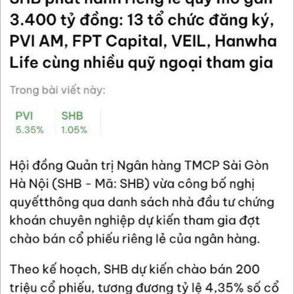 www.dnse.com.vn/.../shb-phat-hanh-rieng-le-quy-mo-gan-3400-ty-dong-13-to-chuc-dang-ky-pvi-am-fpt-capital-veil-hanwha-life-cung-nhieu-quy-ngoai-tham-gia-35200825