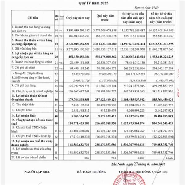 1.500 tỷ, hoàn thành 150% KH. Quý 4/2025 lãi 150 tỷ.