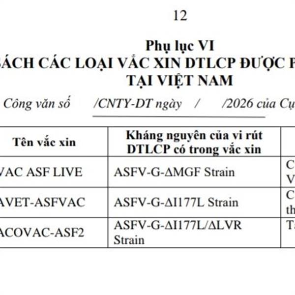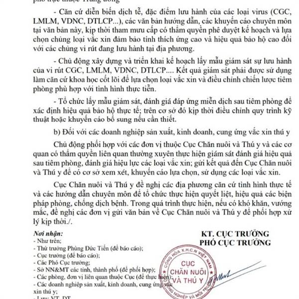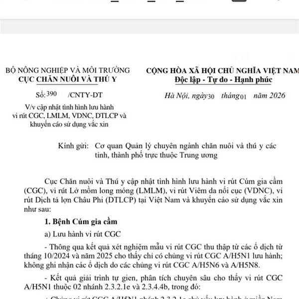 Tôi gửi đây CV mới nhất của Cục chăn nuôi và Thú y ký ngày 30/...Thêm