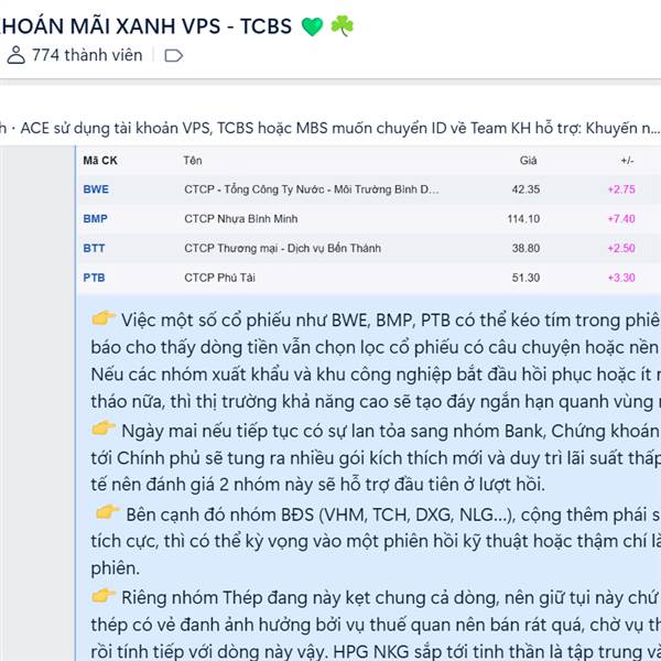 ACE sử dụng TCBS và VPS vào nhóm mình đọc tin tức chi tiết về thị trường nhé. https://zalo.me/g/mdryuw291
