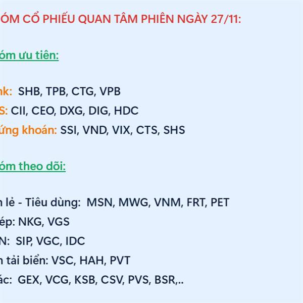 🍀 Nhận định thị trường ngày 27/11: THANH KHOẢN CẢI THIỆN, VN-INDEX DUY TRÌ XU HƯỚNG TĂNG HƯỚNG TỚI KHÁNG CỰ 1700 ĐIỂM.