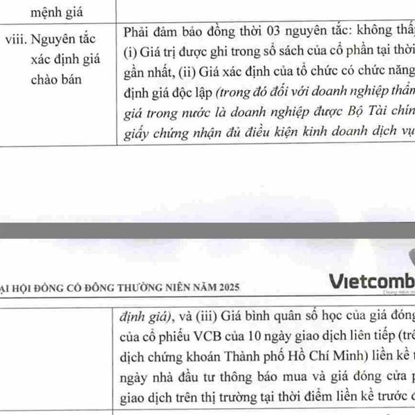 Nguyên tắc xác định giá chào bán cổ phiếu phát hành riêng lẻ của VCB