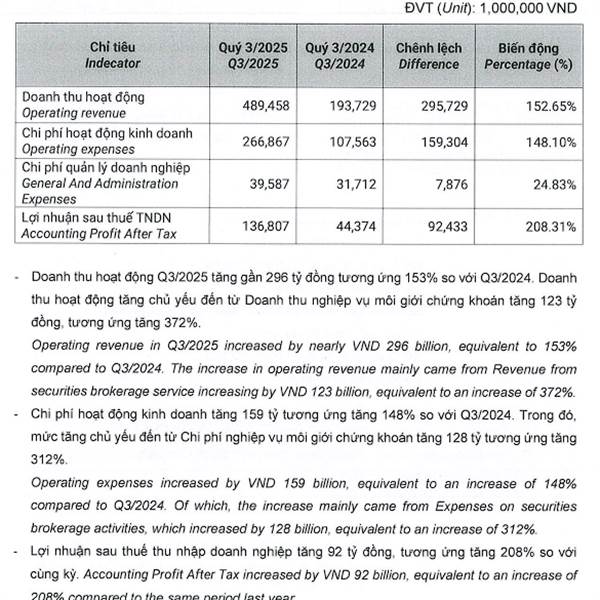 Báo cáo tài chính quý 3 của DNSE khá tốt. LNST tăng 372% so với cùng kỳ, dư nợ cho vay lẫn lợi nhuận cho vay margin tăng mạnh. Xứng đáng vượt đỉnh trong thời gian tới
