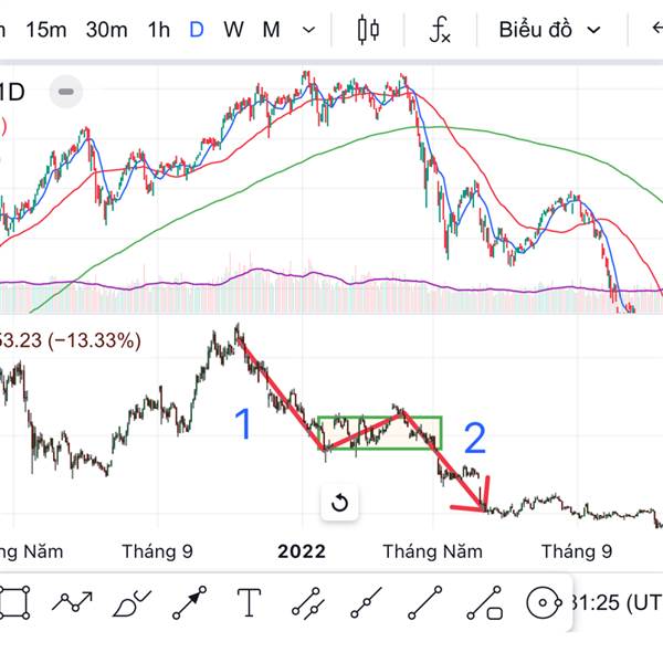+ 2021-2022 coin giảm từ đỉnh xuống nhịp 1 , sau đó đi nền vài tháng lại giảm tiếp nhịp 2 , lúc đó vnindex mới rơi.