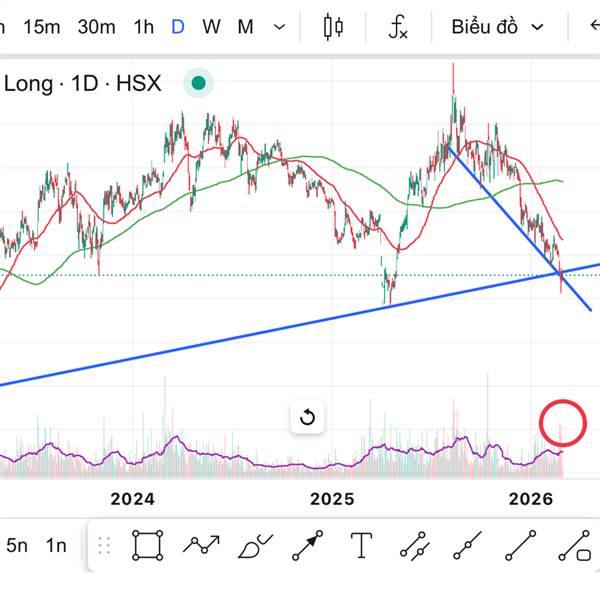 NLG. Chạm trend line dài hạn, phá kênh giảm trung hạn, cụm vol to mà giá k giảm sâu. Có tay to bắt đáy giá này rùi hay sao á