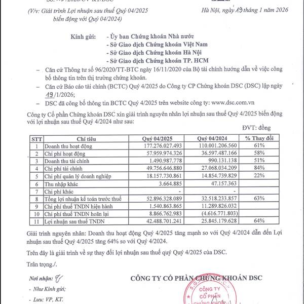 *Lợi nhuận TT Q4 2025: 42 tỉ (Tăng 64% svck)