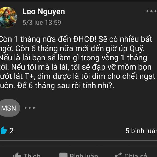 Nếu là lái bạn sẽ làm gì trong vòng 1 tháng tới. Nếu tôi mà là lái, tôi sẽ đạp vỡ mồm bọn lướt lát T+, dìm được là tô...Thêm