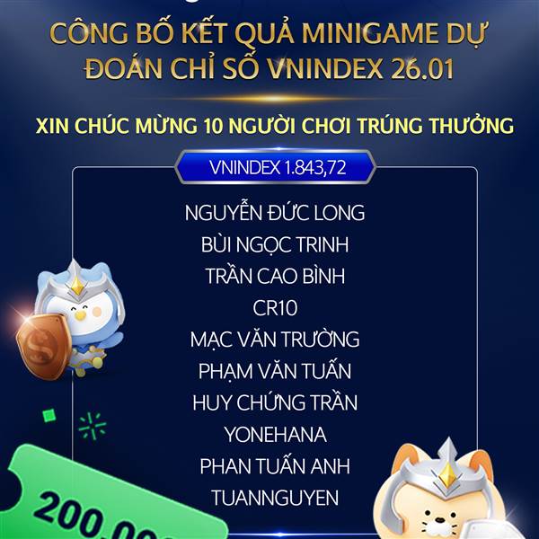 🎉 CÔNG BỐ KẾT QUẢ MINIGAME DỰ ĐOÁN CHỈ SỐ VN-INDEX – 26.01 🎉