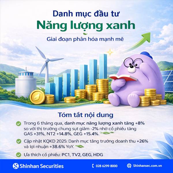 Thị trường chung còn nhiều biến động, nhưng danh mục năng lượng xanh lại ngược dòng ấn tượng (+8%) trong 6 tháng qua. Động lực chính đến từ các cổ p...Thêmshinhansec.com.vn/.../...oan-phan-hoa-manh-me.html