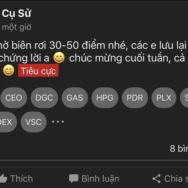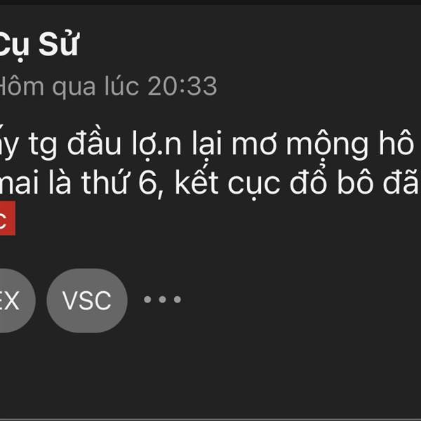 Ta.o nói có sai đâu,nó núp lùm nó đọc hết comment đấy,chỉ là nó quê quá k dám nó cái mặt lồ.n nó ra thôi,ngày mai chỉ cần vsc đỏ 1-2% là nó ló ra ngay,mấy thằng tiểu nhân như này tâ.o đọc nó như 1 cuố...Thêm
