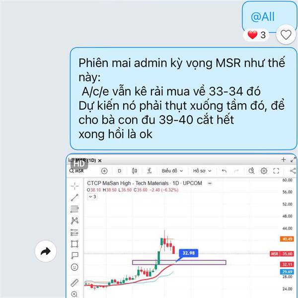 Nay tôi bán dần hàng mua từ giá thấp. Anh em theo dõi tôi ra vào MSR từ chân sóng