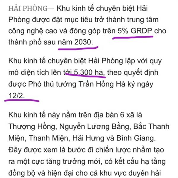 12/2/2026 (tức mới hôm qua), phó thủ tướng Trần Hồng Hà ký quyết định thành lập khu kinh tế chuyên biệt 5300ha ngay bên cạnh dự án Hudland Bình Giang của HLD (44,2ha). Khu kinh tế có diện tích gấp 120...Thêm