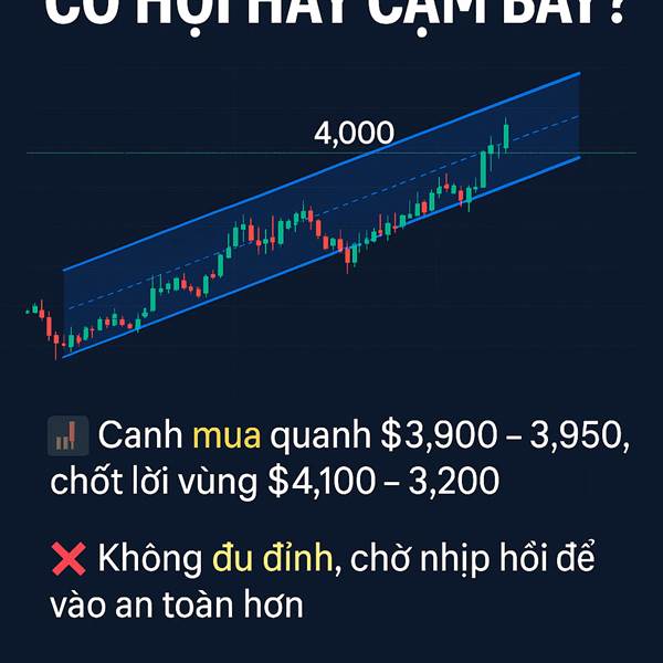 Sau chuỗi tăng nóng, giá vàng (XAU/USD) đã chạm đỉnh lịch sử 4.000 USD/oz 🏆.
