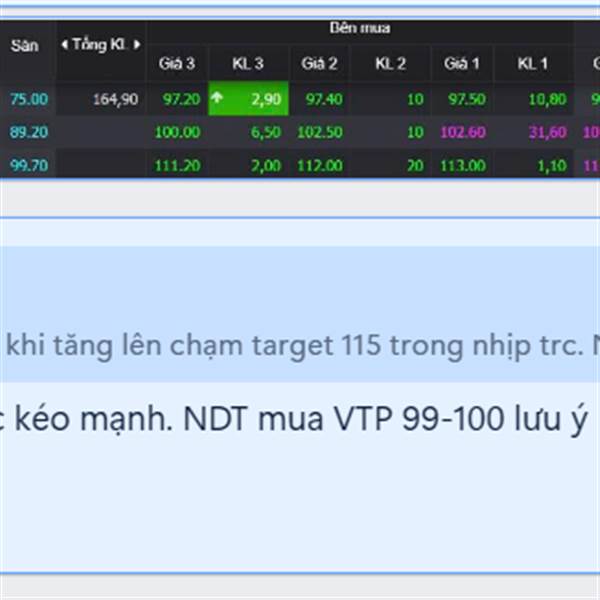 Nhóm Viettel tiếp tục kéo mạnh. NDT mua VTP 99-100 lưu ý khóa lãi trên mốc 110 như đề ra từ lúc mua.
