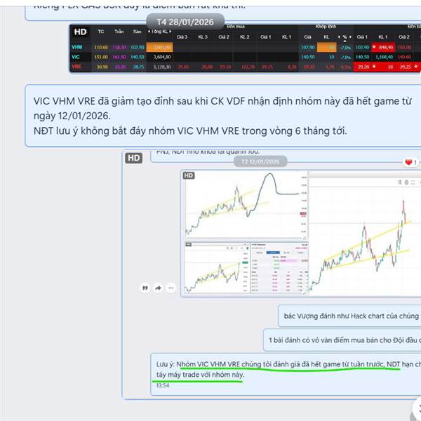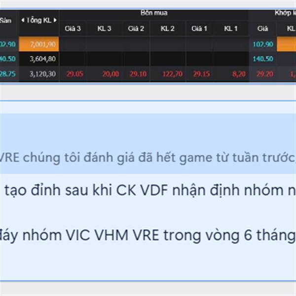 Lưu ý: Nhóm VIC VHM VRE chúng tôi đánh giá đã hết game từ 3 tuần trước, NDT hạn chế táy máy trade với nhóm này.