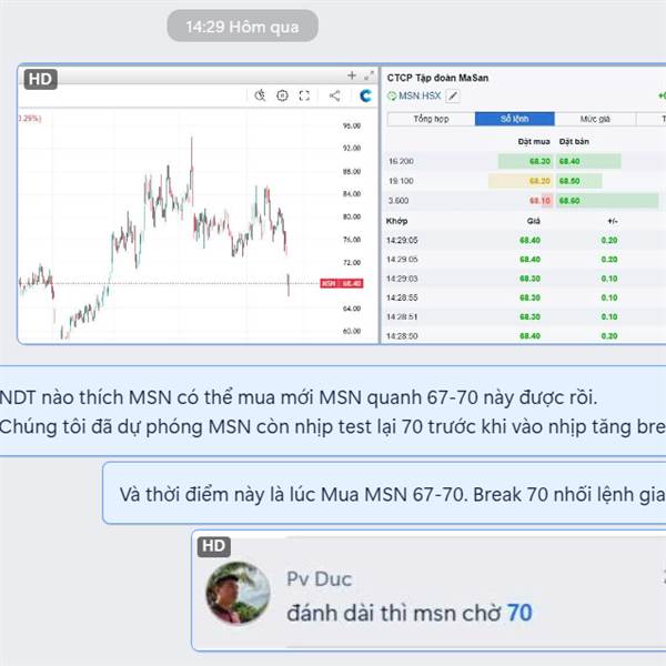 BLĐ MSN cũng tranh thủ gom MSN 68-70 cho thấy vùng mua 68-70 mà CK VDF note đang là vùng được các BB nâng đỡ.