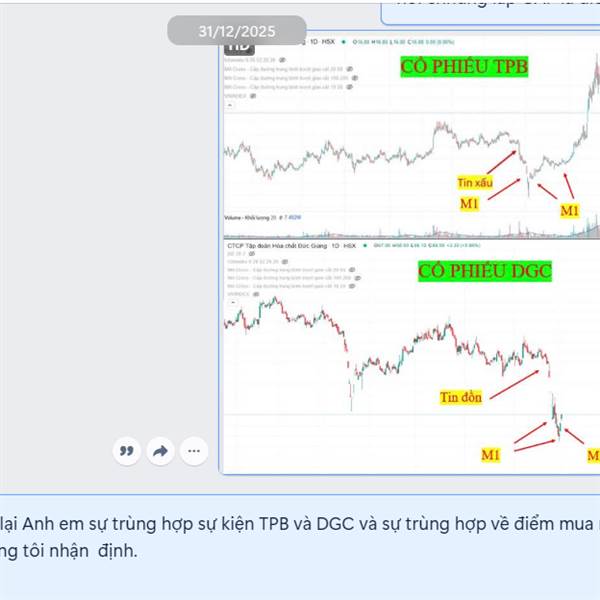 Chúng ta cùng nhìn lại bài viết DGC khi giảm về vùng 60-75 được chúng tôi đánh giá có nét giống TPB lúc tin xấu bắt bớ, TPB giảm từ 14 về 10 và bật tăng lên 20.