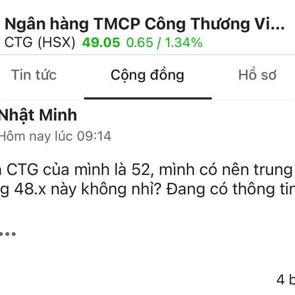 Giá vốn CTG của mình là 52, mình có nên trung bình giá vùng 48.x này không nhỉ? Đang có thông tin cổ tức