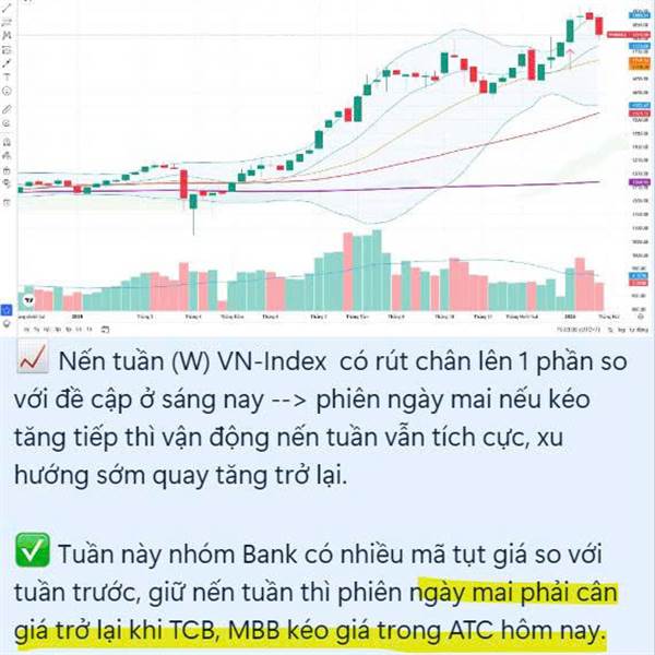 📈 Duy trì phục hồi điểm số, sáng nay VN-Index kéo tăng tích cực nhờ giúp sức nhóm vốn hóa lớn như BID - VCB - GAS - BSR - MWG,..Nến tuần (W) rút chân thêm so với phiên hôm qua sau chuỗi giảm liên tiế...Thêm