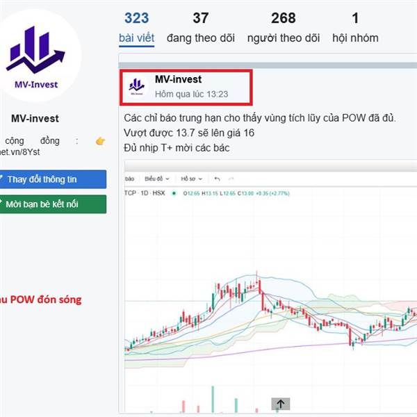 CẬP NHẬT POW: - Pow em đã tặng các bác vùng 12.x ngay mở phiên đầu năm CP nay đã lên 14.x - CP đang tạo 1 nền ngắn quanh 14 tuy không quá đẹp vì vol rất lớn nhưng cũng không quá xấu vì CP vẫn giữ được n...Thêm
